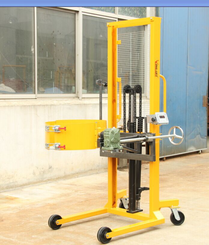 ★帶電子秤稱重式液壓油桶搬運(yùn)裝卸倒料車,有置零、 去皮、稱重功能,精確度可達(dá)到±100克。