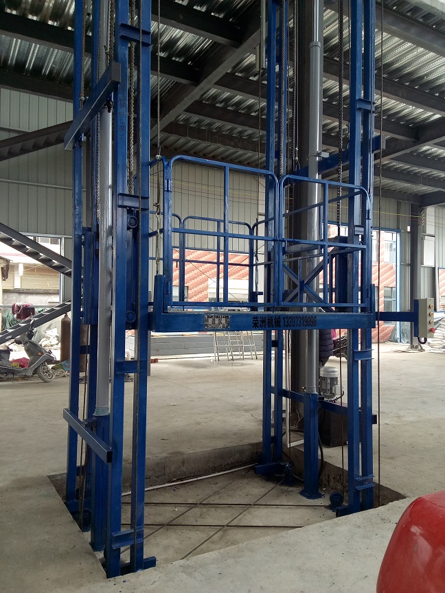 導(dǎo)軌式液壓貨梯:貨物提升機(jī)主要用各種工作層間貨物上下運(yùn)送;立體車庫和地下車庫二層以上高樓間、無法開挖地坑場所、頂層高度不能到達(dá)要求的場合等比較難解決的狹小空間,