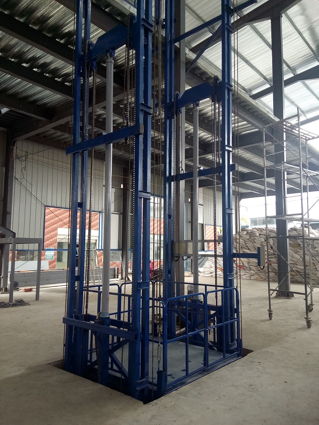 導(dǎo)軌式液壓貨梯:貨物提升機(jī)主要用各種工作層間貨物上下運(yùn)送;立體車庫和地下車庫二層以上高樓間、無法開挖地坑場所、頂層高度不能到達(dá)要求的場合等比較難解決的狹小空間,